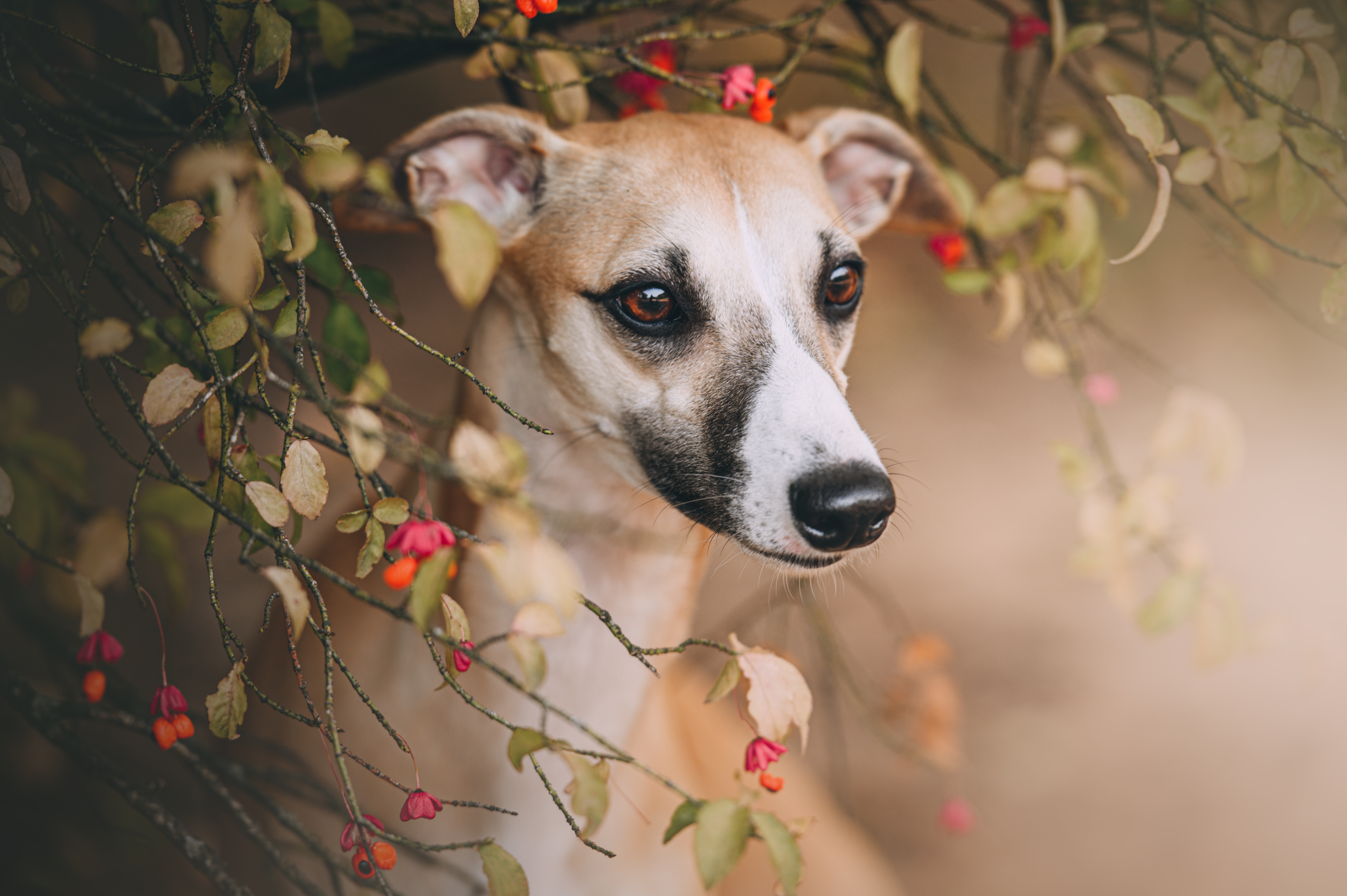 En whippet har ett stort behov av närhet, både till människor och andra hundar och i denna lilla eleganta hund ryms en stor portion värdighet. En whippet älskar bekvämlighet, mysiga hörnsoffor och sköna varma sängar med duntäcken passar den perfekt. Innehunden whippet är som vuxen oerhört lugn och tystlåten. Som motsats till detta är en whippet också en mycket sportig och aktiv hund. Den är alltid pigg på promenader i skog och mark och det är en verklig skönhetsupplevelse att se en eller flera whippets sträcka ut över en äng. Som valp är en whippet däremot mycket aktiv och otroligt uppfinningsrik!